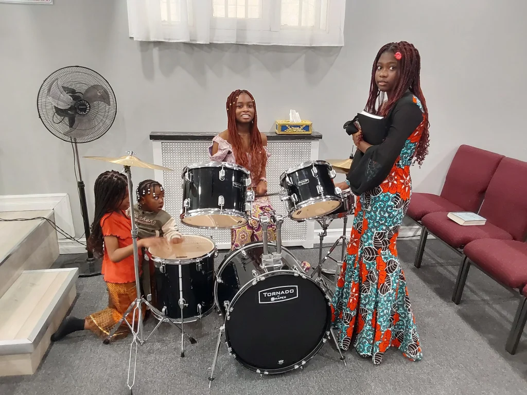 Des enfants participent à une activité musicale éducative organisée par le C.F.A.P.F-W.E. À travers la musique, le centre favorise la créativité, la confiance en soi et l’épanouissement des jeunes dans un environnement inclusif et sécuritaire.